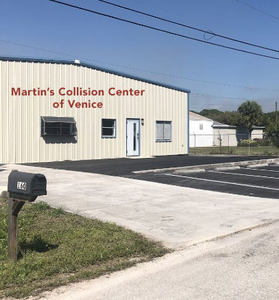 Welcome to Martins Collision Center of Venice. We are the #1 provider of all auto body services in the area, with a full range of services including auto body painting, auto body repair, towing, glass repair, ding and dent repair, insurance claim assistance and beyond.